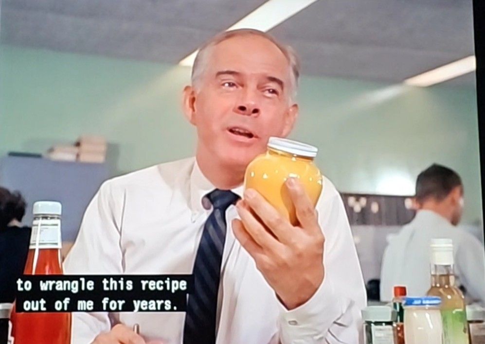 In trying to recreate the recipe as-is, we’re going to rely on the dialogue as written as well as the items Gannon has on his desk. Right away we run into some problems, mostly in terms of measurement. In his little monologue, Bill Gannon uses at least three different units of measurements for his ingredients, including volume, container, and weight. Now obviously, the writers of this episode never expected somebody to try and recreate it – this is a comic relief scene, and I suspect this episode (The Big High) was front-loaded with comedy because the rest of the episode is a particularly heavy-handed anti-drug story with an ending that is one of the darkest of the entire series (ironically, the idea of barbecue sauce made with ice cream sounds like an idea someone would come up with while high, but oh well) So while we’re going to try and stay as true to the scene as possible, there are some moments where we’ll have to do some interpretation and substitution.