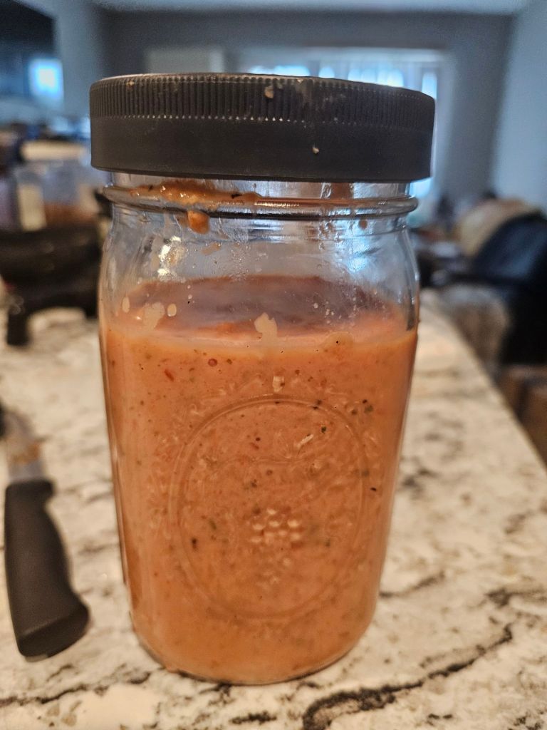 Now this brings up an unexpected problem. I bought some Breyer’s, and the case said it holds 1.5 quarts. But when I tried to measure out 32 ounces on my kitchen scale, the whole of the container didn’t reach that amount. Is this another example of shrinkflation in action, or is there something else going on? I dunno, so I’m probably going to end up eyeballing the amount. I’m also switching from the whisk to the actual immersion blender attachment to make sure everything is of an even consistency and there aren’t any errant chunks of vegetables floating around.
