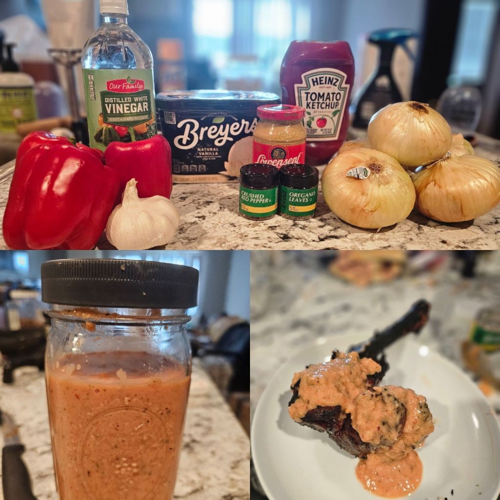 It all starts out innocently enough… ketchup, mustard, onions, garlic, and vinegar are commonly found in barbecue sauce recipes. But vanilla ice cream? It might not actually be as silly as it seems. Almost every barbecue sauce contains a lot of sweeteners – usually molasses, but it could also be brown sugar, honey, there’s even a recipe from one of Snoop Dogg’s cookbooks for a barbecue sauce that contains apricot jam! Also since the sauce is being used for lamb that could play nicely, too, as lamb often pairs well with sweet flavors.